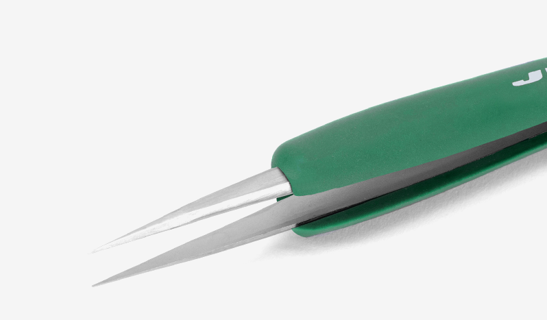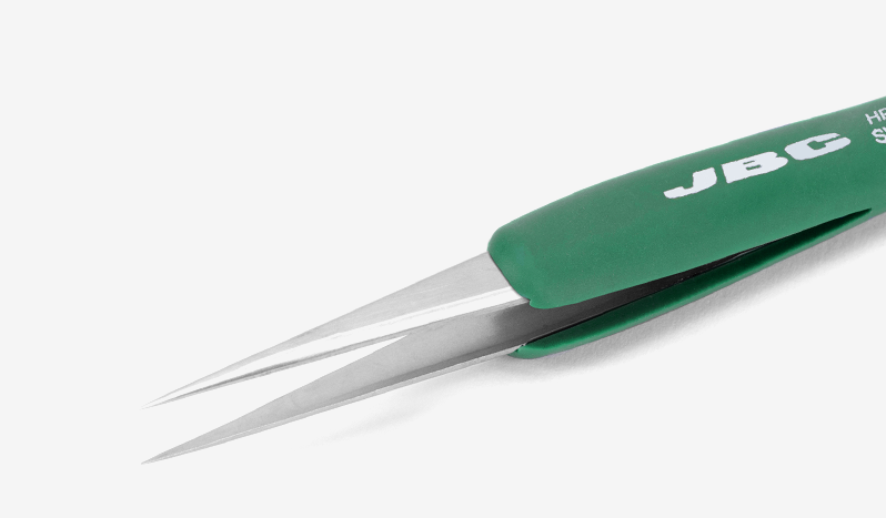 Made of anti-magnetic and anti-acid stainless steel, JBC high-precision tweezers are engineered to deliver accuracy, strength and operator comfort for delicate and demanding applications.